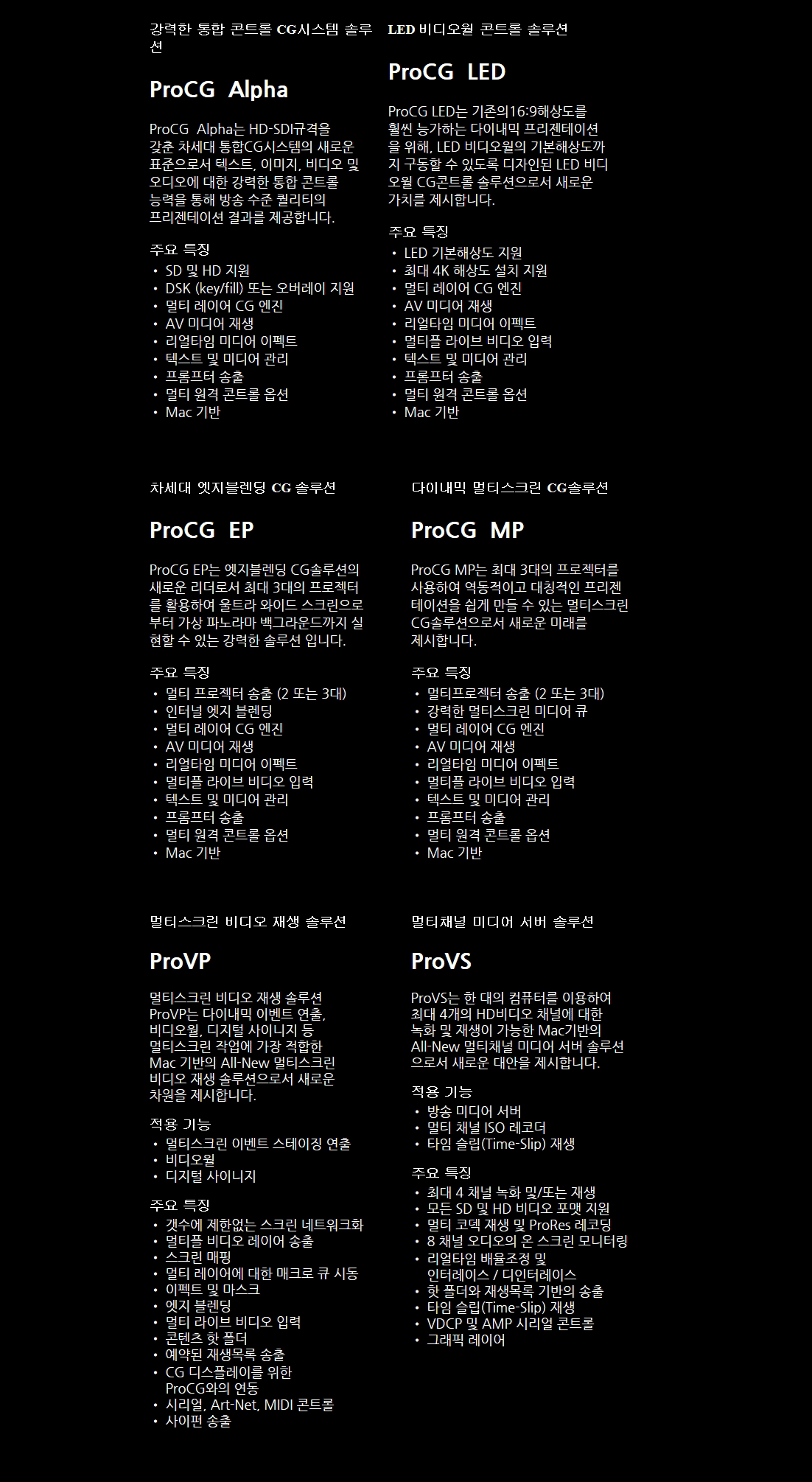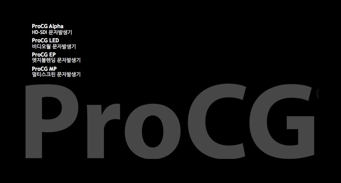 ProCG´Â º¸´Ù Àü¹®ÀûÀÌ°í °¨µ¿ÀûÀÎ ¿¹¹è³ª À̺¥Æ®¸¦ À§ÇÑ, ¸Æ°ú À©µµ¿ì¿¡ ¸ðµÎ »ç¿ë°¡´ÉÇÑ °¡»ç¿Í ¹Ìµð¾î ÇÁ¸®Á¨Å×ÀÌ¼Ç ÀÌ´Ù Ãֽűâ¼úÀ» ¸ðµÎ Á¢¸ñÇÑ ProCG´Â »ç¿ëÀÚ·Î ÇÏ¿©±Ý ¼ºµµµé³ª °ü¸²°´¿¡°Ô ÇѰ³ ÀÌ»óÀÇ ½ºÅ©¸°¿¡ ¿µ»ó°ú °¡»ç¸¦ ¿ªµ¿ÀûÀ¸·Î º¸¿©ÁÙ ¼ö ÀÖ°Ô µÈ´Ù